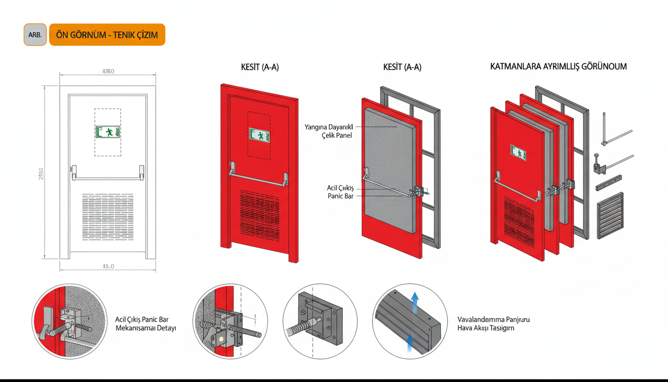 Acil çıkış kapıları, yangın ve acil durumlarda güvenli ve hızlı tahliyeyi sağlamak için tasarlanır.