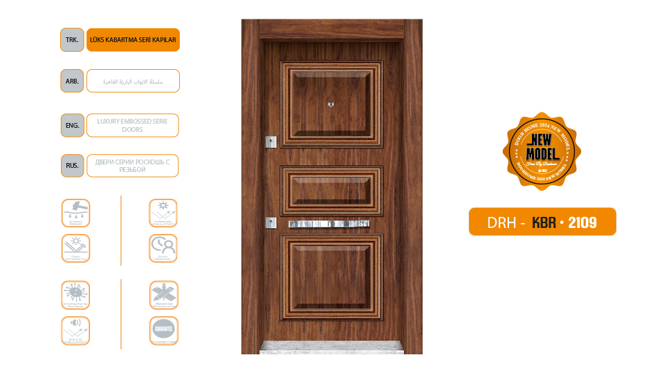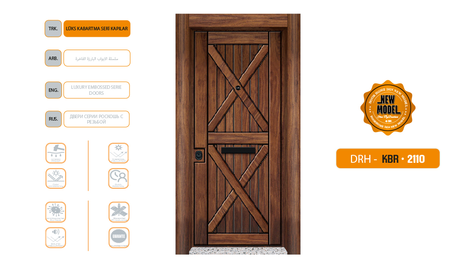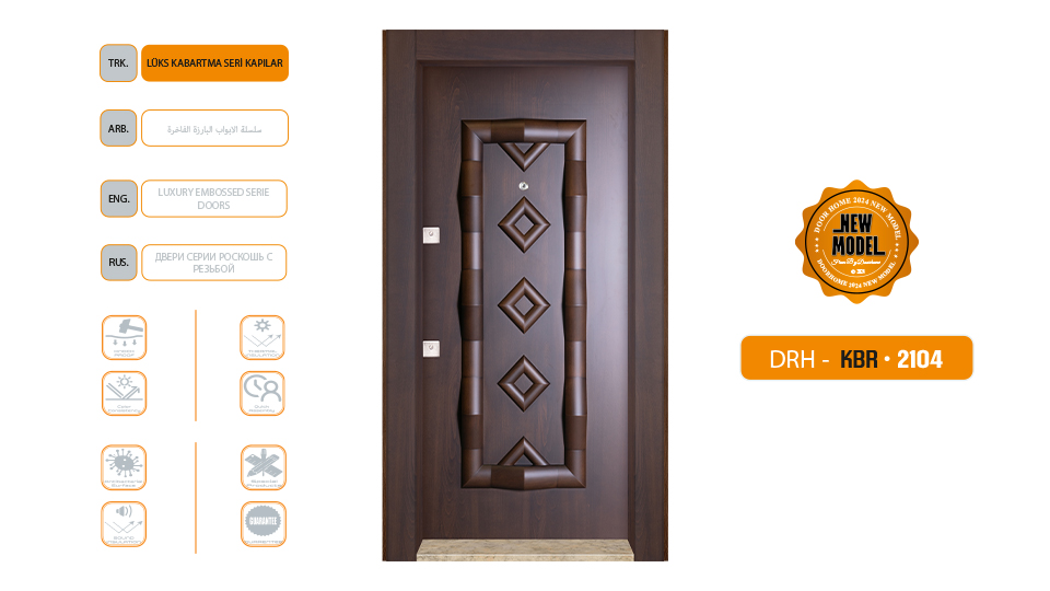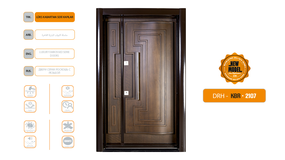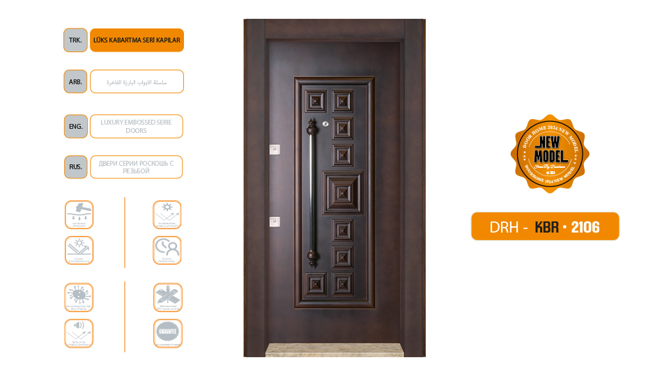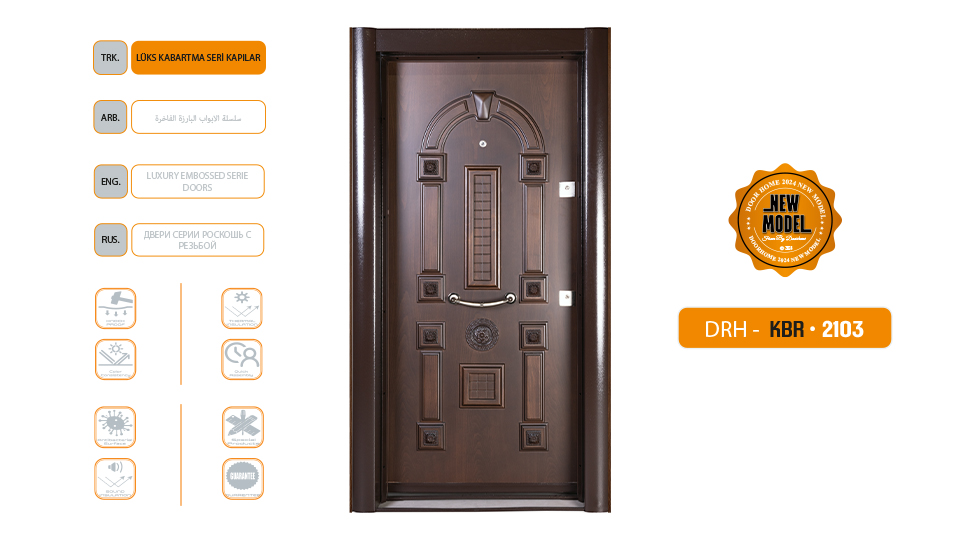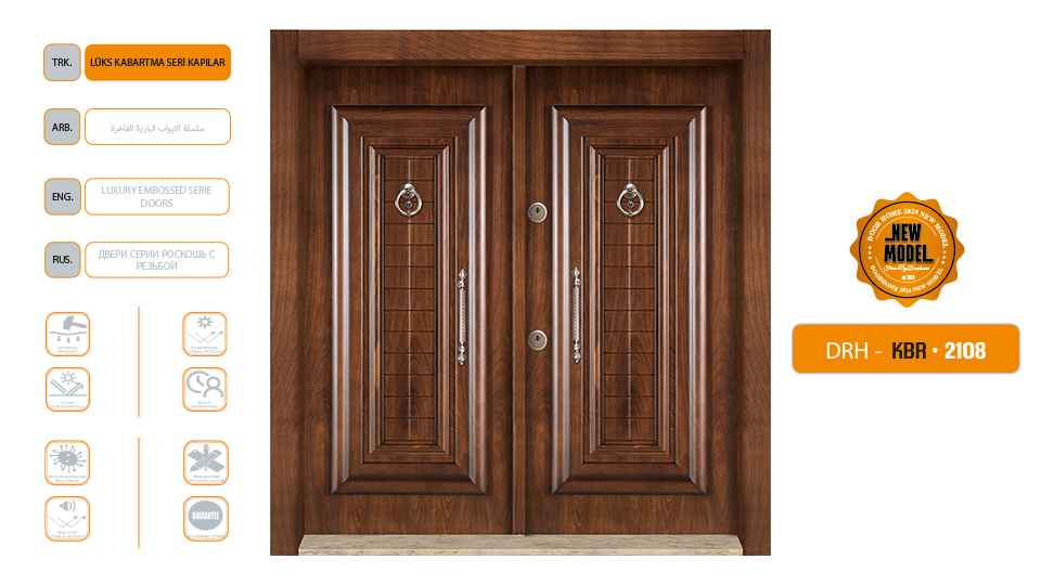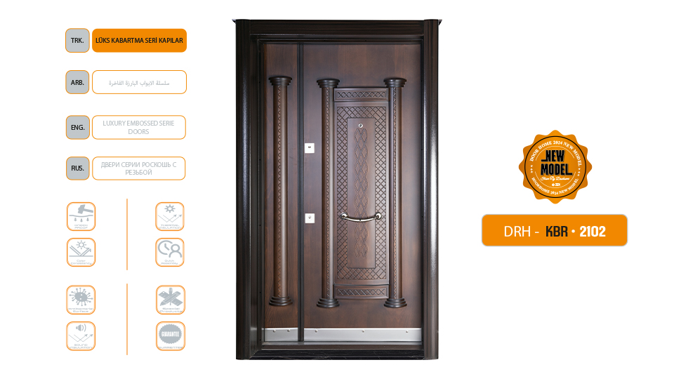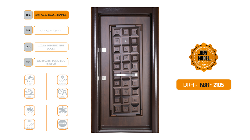 Lüks Kabartma Seri Kapılar, özel kabartma yüzey detayları, yüksek kaliteli malzeme yapısı ve zarif tasarım çizgileri ile mekânlara prestij kazandırır.